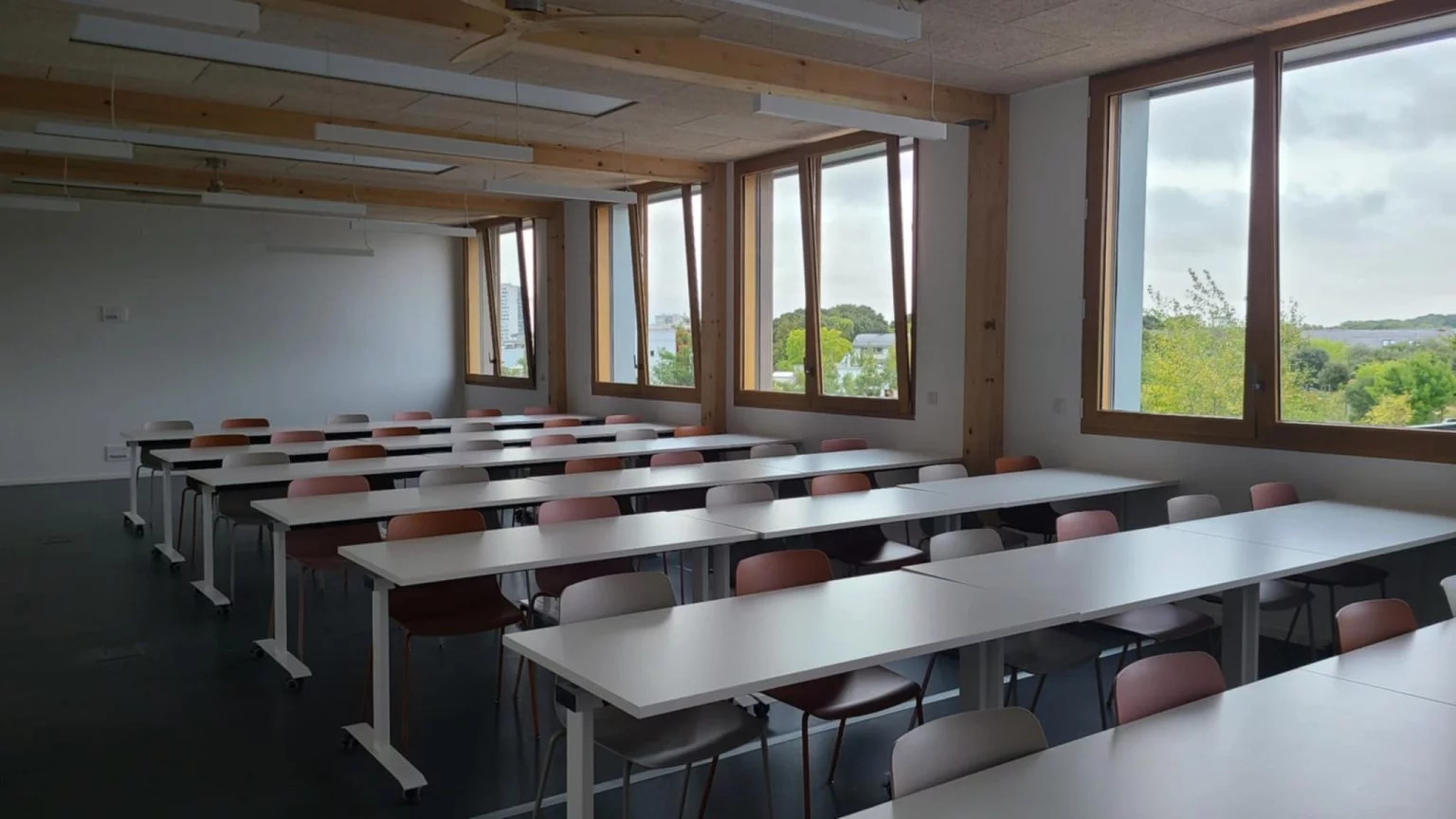 D’un côté il y a l’école de commerce Excelia qui affiche son bâtiment flambant neuf, écoresponsable, équipé d’un rooftop avec