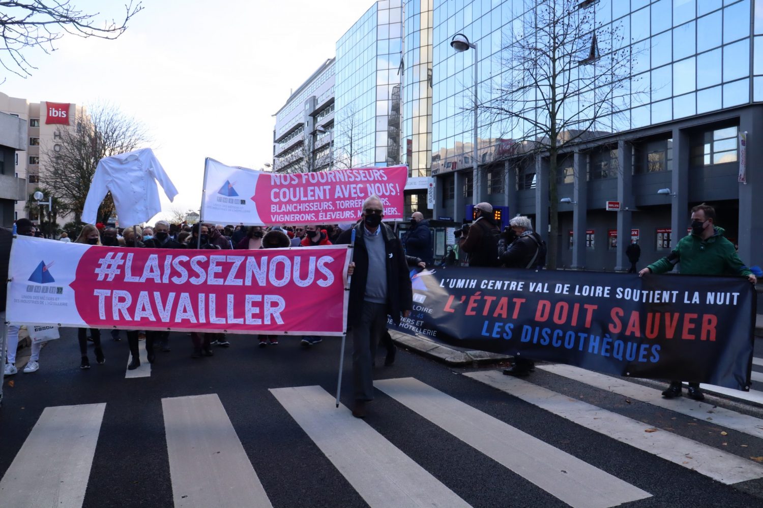 Ce mardi les restaurateurs, cafetiers, hôteliers ou encore gérants de boîte de nuit ont manifesté dans les rues de Tours