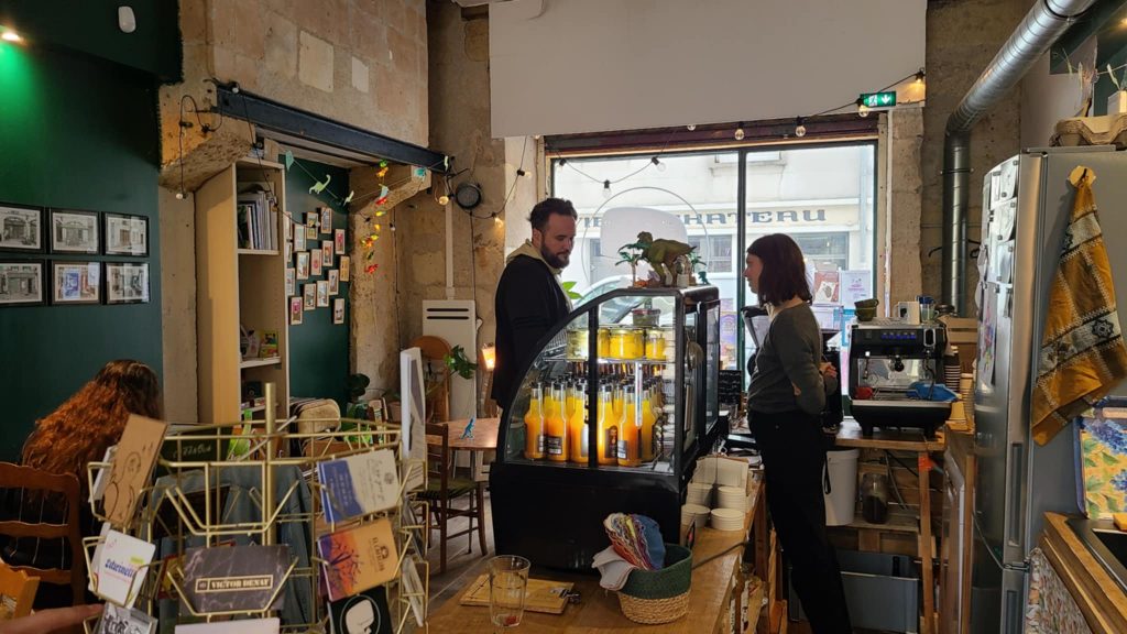 Ouvert en journée du mercredi au lundi, et le soir en cas d’événement, l’endroit la joue en mode coffee shop avec petite restauration maison (les cookies cuisent dans une authentique cuisinière ménagère). Les cafés viennent de la brûlerie tourangelle El Cafecito, les thés, jus de fruits ou aliments sont de maisons de qualité (comme La Fourchette Paysanne). Il y a même de la bière sans gluten.