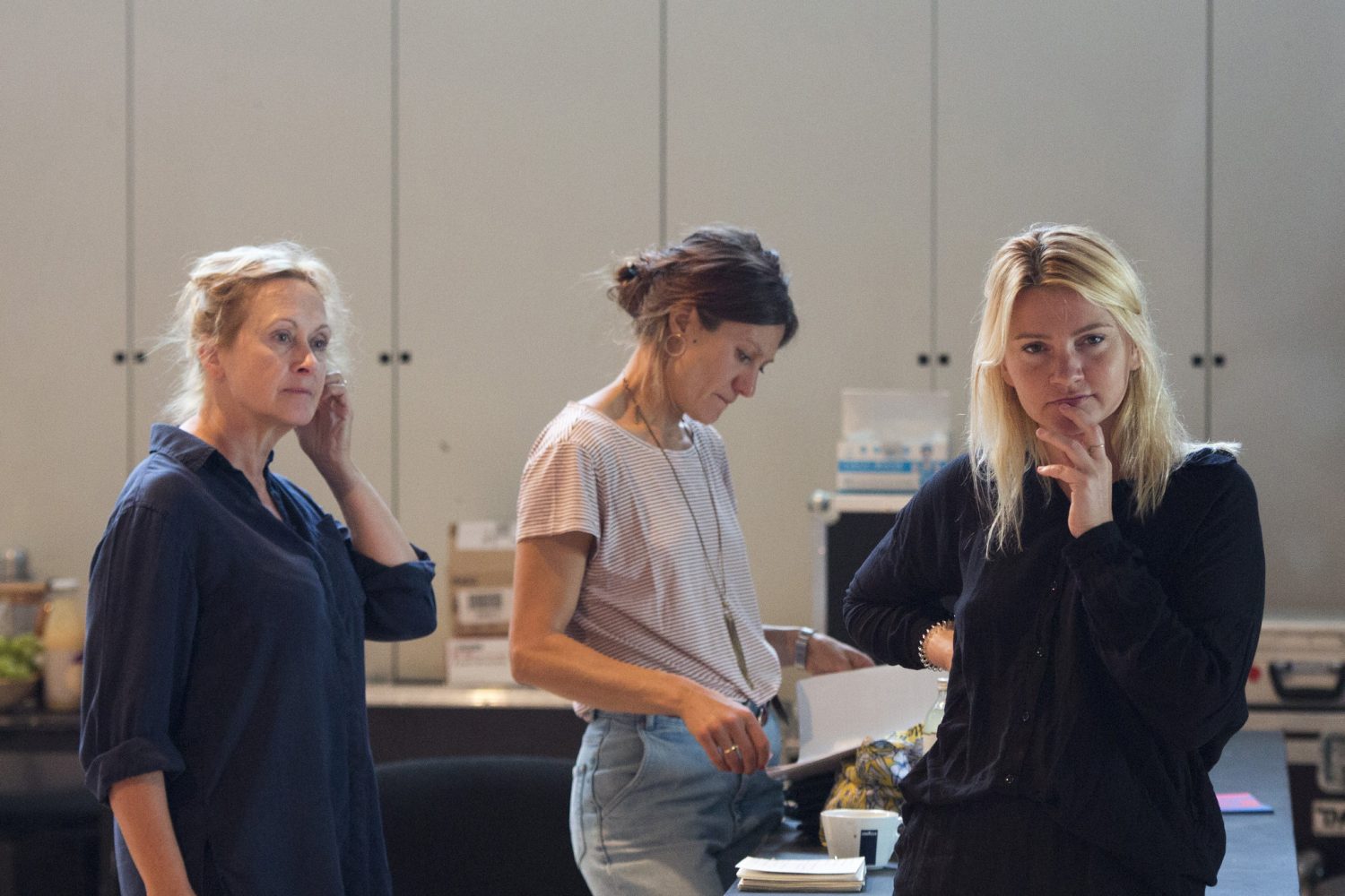 Pendant 1h40, on reste donc à l’extérieur face à un spectacle de désolation mentale. La frêle France et Mme Diss sont bientôt rejointes par Nancy, l’ex-femme qui pleure la mort de son fils Jacky. Obligée de soudoyer sa belle-mère pour lui extorquer des souvenirs, elle revit le calvaire de l’adolescent enfermé dans une cage avec des serpents. Du secret familial enfoui et larvé on passe au thriller terrifiant. Gardant cette intrigue en toile de fond, Hélène Alexandridis, Bénédicte Cerutti et Tiphaine Raffier s’écharpent continuellement, accusant – parfois à demi-mot, parfois sans retenu – l’homme de tous les maux. Sauf qu’ici personne ne parvient à l’affronter frontalement.