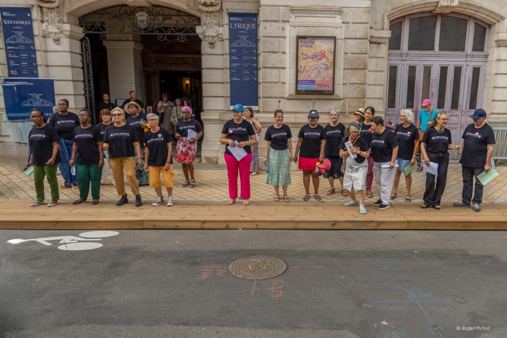 Le lendemain, samedi 21 juin, jour de la Fête de la Musique, le chœur a fait vibrer le parvis de l’Opéra de Tours. Symboliquement, ces voix venues de la marge se sont invitées au cœur de la ville, au cœur de la culture, au cœur des passants.