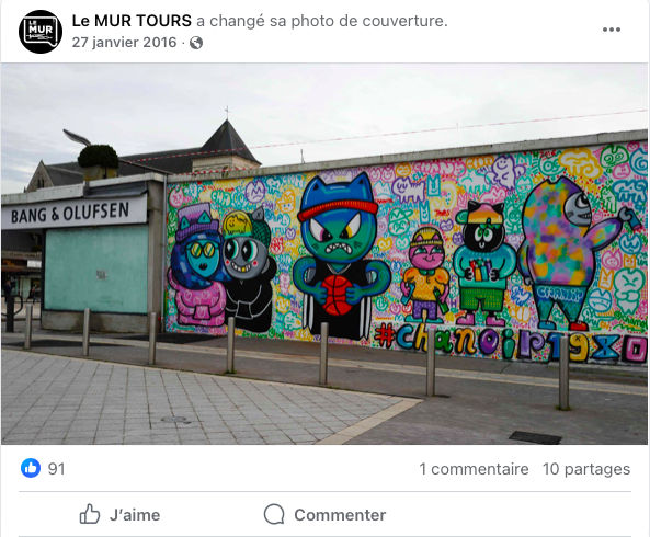 On peut le dire, le street art a désormais toute sa place dans la culture de Tours. Même dans le secteur du tourisme, le street art est désormais bien ancré. Sur le site de l’Office de Tourisme de Tours, on nous propose un “voyage urbain” qui nous invite à suivre un itinéraire pour découvrir une sélection d’œuvres dispersée sur toute la ville.