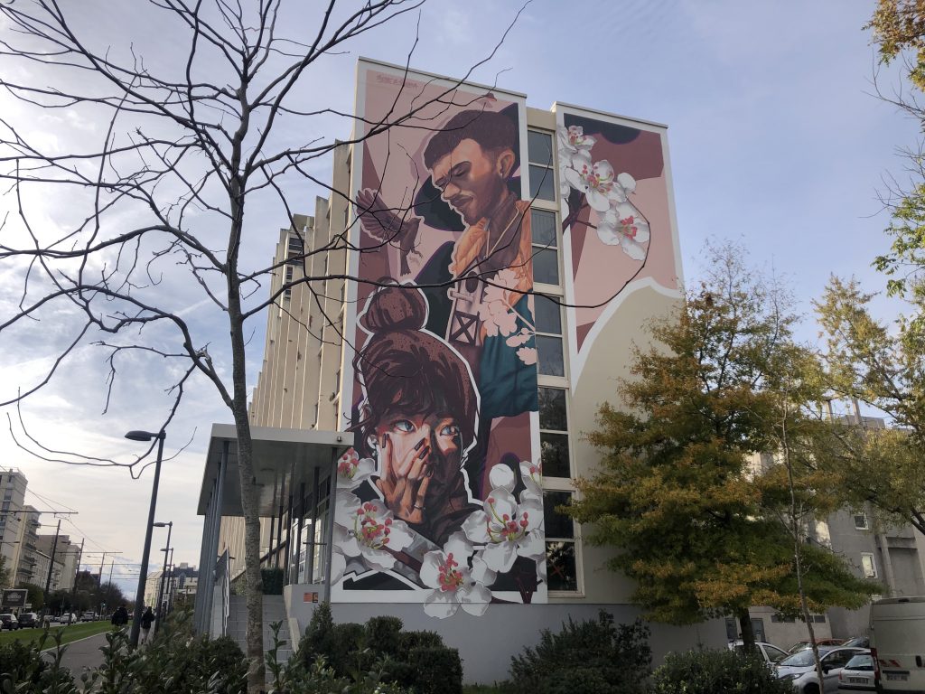 Le premier est aujourd’hui habillé par deux fresques de 100 et 40 m2 réalisées respectivement par l’artiste lyonnais Brusk et le Tourangeau Drope.