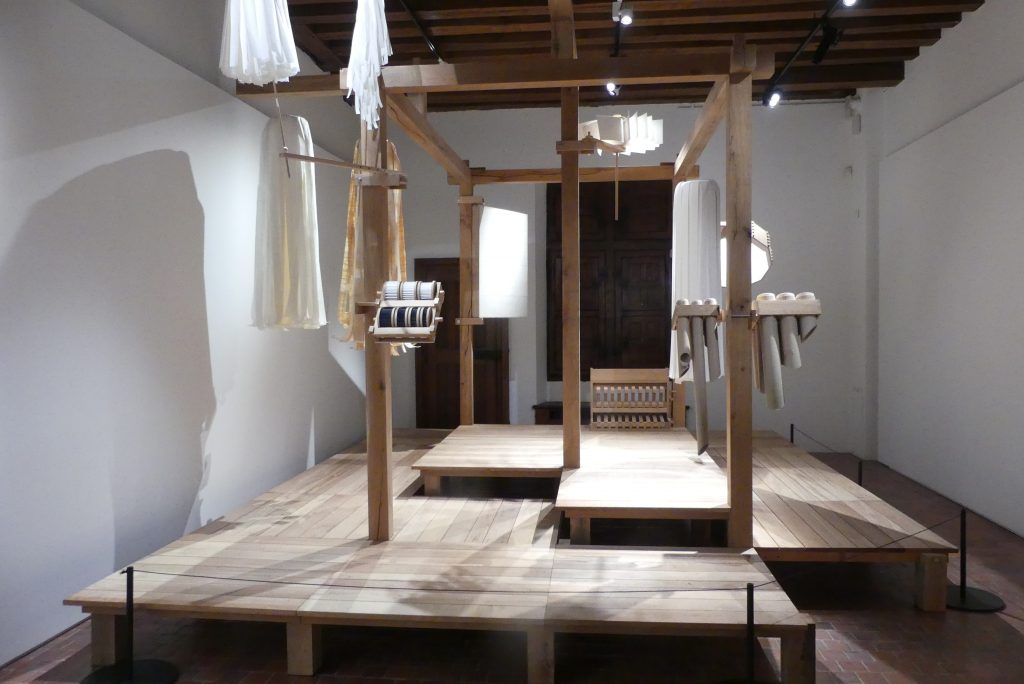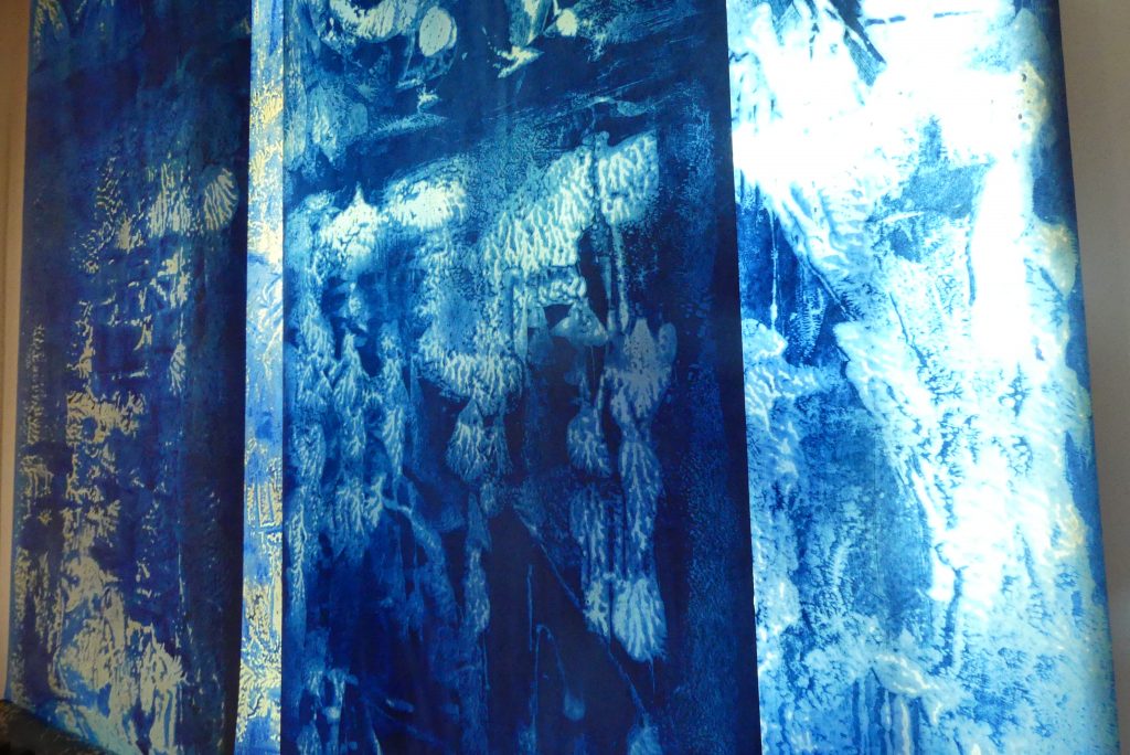 Il ne s’agit pas d’une rétrospective du travail de d’Offard. Plutôt un moyen des plus ludiques de montrer les techniques de travail et toutes les possibilités offertes. Plusieurs œuvres monumentales sont exposées dont une fresque autour des paysages de Loire de 20m de long ayant déjà nécessité 200h de travail et qui n’est pas encore achevée. On découvre également, au 1er étage, une installation en papier washi japonais, composé de fibres végétales. Déjà présentée au pays du soleil levant, elle est cette fois mise en valeur via une installation lumineuse inédite. Dehors, un mobile tout de blanc vêtu accroché au balcon réalisé spécialement pour cet événement. Et au 2e étage, c’est une litanie de rouleaux ou planches aux motifs et couleurs innombrables qui se déploie.