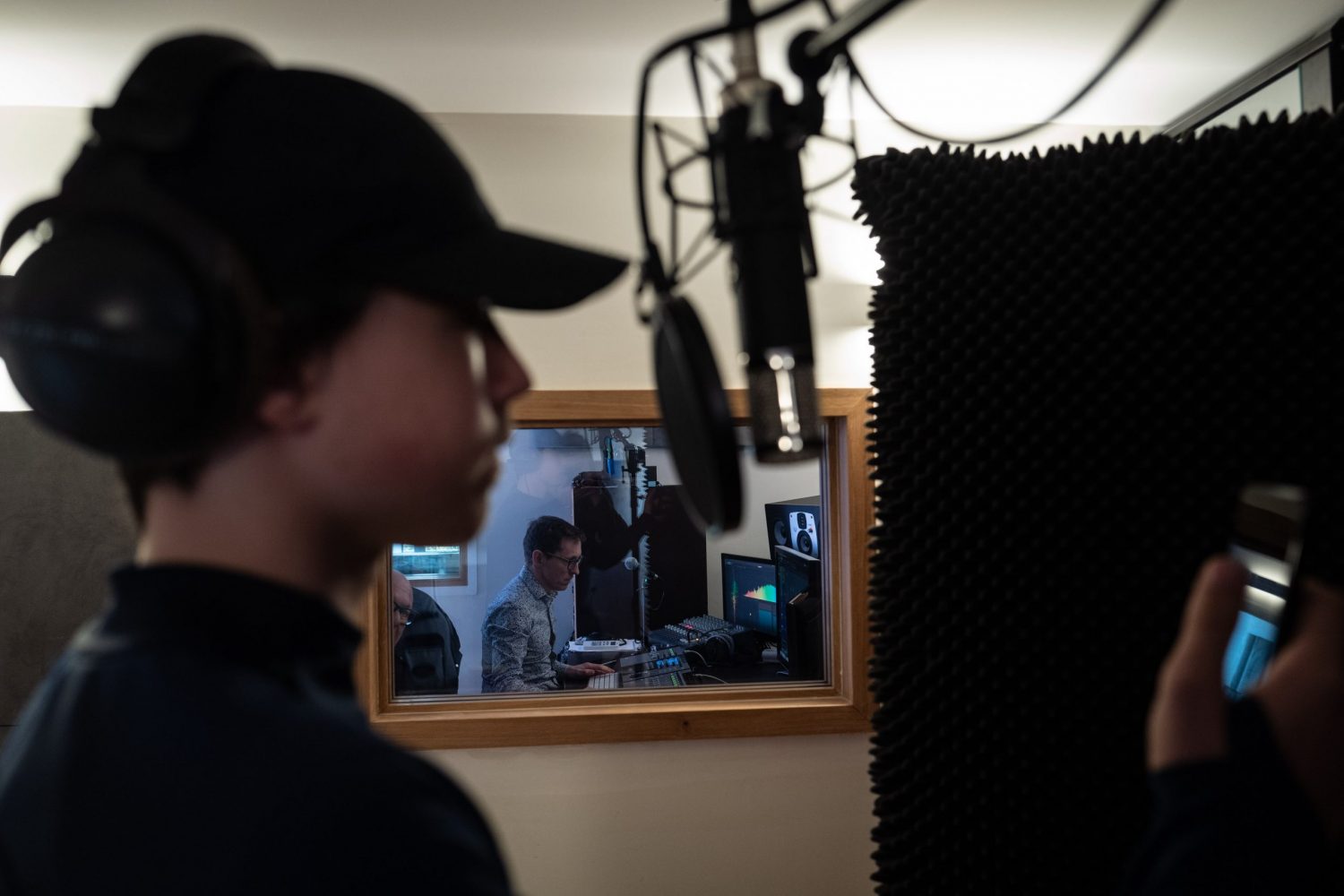 S’agissant de jeune rappeur, Arthur effectue en ce vendredi 5 mars sa première expérience au Keen Studio à Tours-Nord. Le regard fuyant et le sourire timide, le jeune homme de 14 ans est accompagné de son père. Il pose des textes qui racontent des histoires de « baceux » sur des instrumentaux trap. « Depuis le confinement j’ai beaucoup de rappeurs qui viennent essayer des choses. J’ai aussi pas mal de voix off mais peu de groupes pour qui ça semble plus incertain » estime Cyrille Peltier, gérant de l’entreprise Keen Studio. Comme Phoenix Event, celle-ci existe depuis 2018 et se trouve adjacente aux locaux de ses partenaires. C’est dans la zone industrielle de Tours-Nord, à l’Arkopol Espace, que Cyrille a posé ses valises. Le lieu de co-working réunit une salle de spectacle de 260 places et, au premier étage, l’entreprise de conception lumières Lyum. Ainsi Cyrille travaille sur des oeuvres de mapping, une activité qui s’ajoute à celle des captations live et des formations qu’il mène. « On évolue un peu au jour le jour, je ne me plains pas », explique-t-il. Comme nouvelle corde à son arc, l’ingénieur souhaite installer un système immersif qui pourra faire circuler le son partout dans la pièce « L’objectif c’est de créer une œuvre d’art et d’inciter les artistes à composer de cette façon. On pourra proposer l’expérience à des cabinets de thérapeutes, à des salons de massage… »