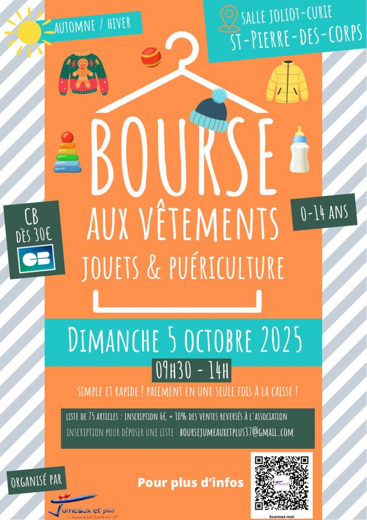 Comme tous les ans, nous organisons notre bourse aux vêtements pour l’automne et hiver, au 82 rue de la Morinerie à Saint Pierre des Corps.