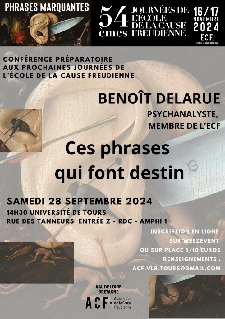 Conférence de Benoît Delarue, psychanalyste, membre de l’Ecole de la Cause freudienne