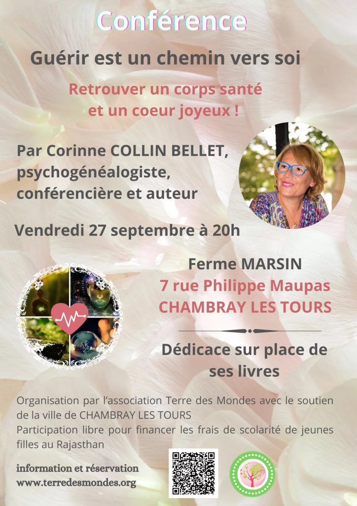 Corinne COLLIN-BELLET, psychogénéalogiste, conférencière et auteur, nous partagera son chemin d’auto guérison de l’intérieur.