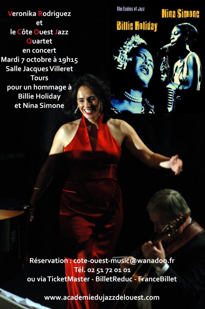 La chanteuse internationale Veronika Rodriguez et le Côte Ouest Jazz Quartet rendront hommage aux deux icônes du Jazz que sont Billie Holiday et Nina Simone le Mardi 7 Octobre Salle J. Villeret
