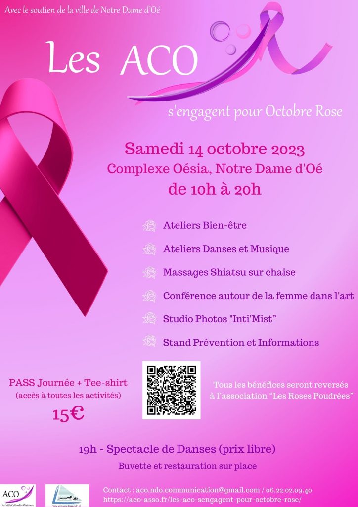 Les ACO, avec le soutien de la ville de Notre Dame d’Oé, s’engagent pour Octobre Rose samedi 14 octobre 2023, au complexe Oésia à Notre Dame d’Oé