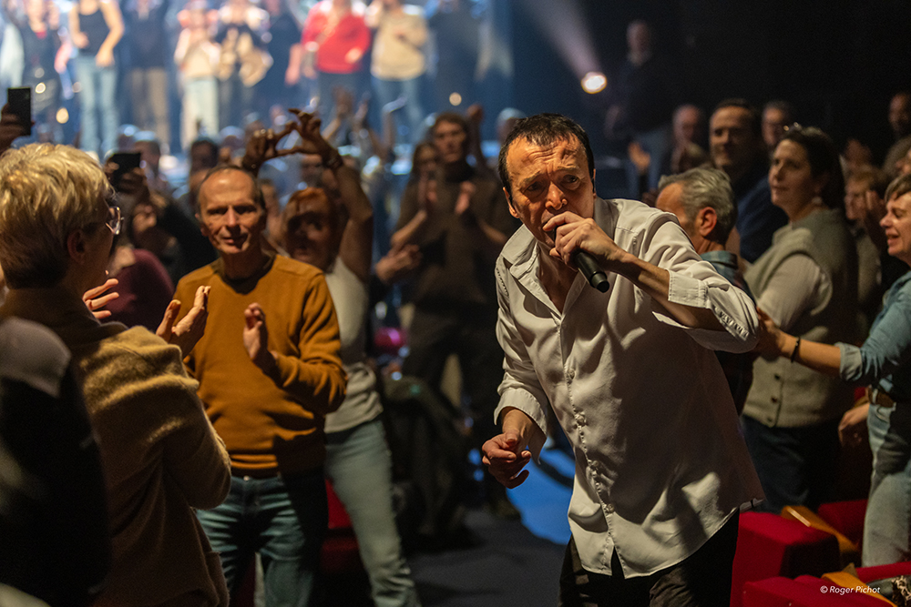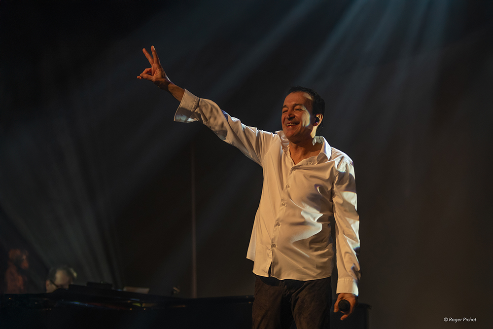 Dès son arrivée face au public, son énergie débordante enflamme la salle et il n’hésite pas à faire monter sur scène une spectatrice du premier rang et chanter sa première chanson Sweetie, ensuite tout au long de la soirée, c’est avec une énorme générosité qu’il va communier avec son public tout acquis et dans un final où il fera monter sur scène une trentaine de personnes, qui partageront avec lui ce final, non sans avoir refait le tour de la salle et entreprendre Amazing Grâce dans un duo improvisé avec l’adjoint à la culture de la ville, ténor à l’Opéra.