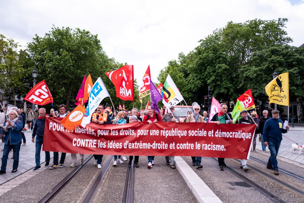 Un véritable précipité chimique de la France post-dissolution : inquiétude des prochains résultats électoraux et calme apparent derrière lequel règne une tension palpable, les manifestants présents ce matin ont fait front ensemble contre l’extrême-droite. On peut espérer que certains d’entre eux iront au concert gratuit de Tiken Jah Fakoly, ce samedi soir à la Riche. Ce sera une bonne occasion de prendre un peu d’air avant la prochaine mobilisation, au son de “Ouvrez les frontières”.