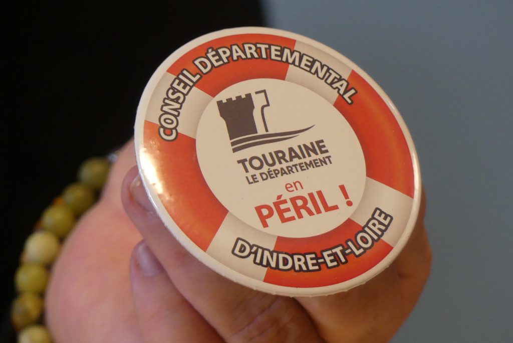 En ce début d’année 2025, c’est au tour du Conseil Départemental de faire une action de communication pour s’indigner de sa situation financière et du manque de considération de l’Etat à son égard. Pas de banderole cette fois-ci. Trop cher. La présidente Nadège Arnault a simplement acheté des pin’s en plastique « Le Conseil Départemental en péril ». Tous les élus (majorité et minorité) ont reçu un exemplaire au moment de discuter des orientations budgétaires de 2025.
