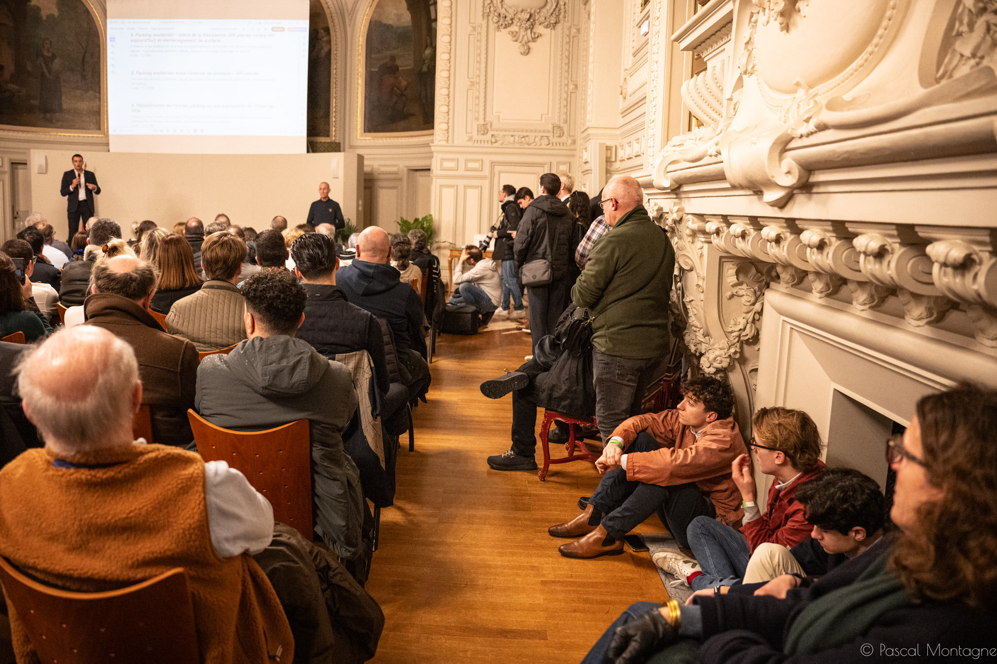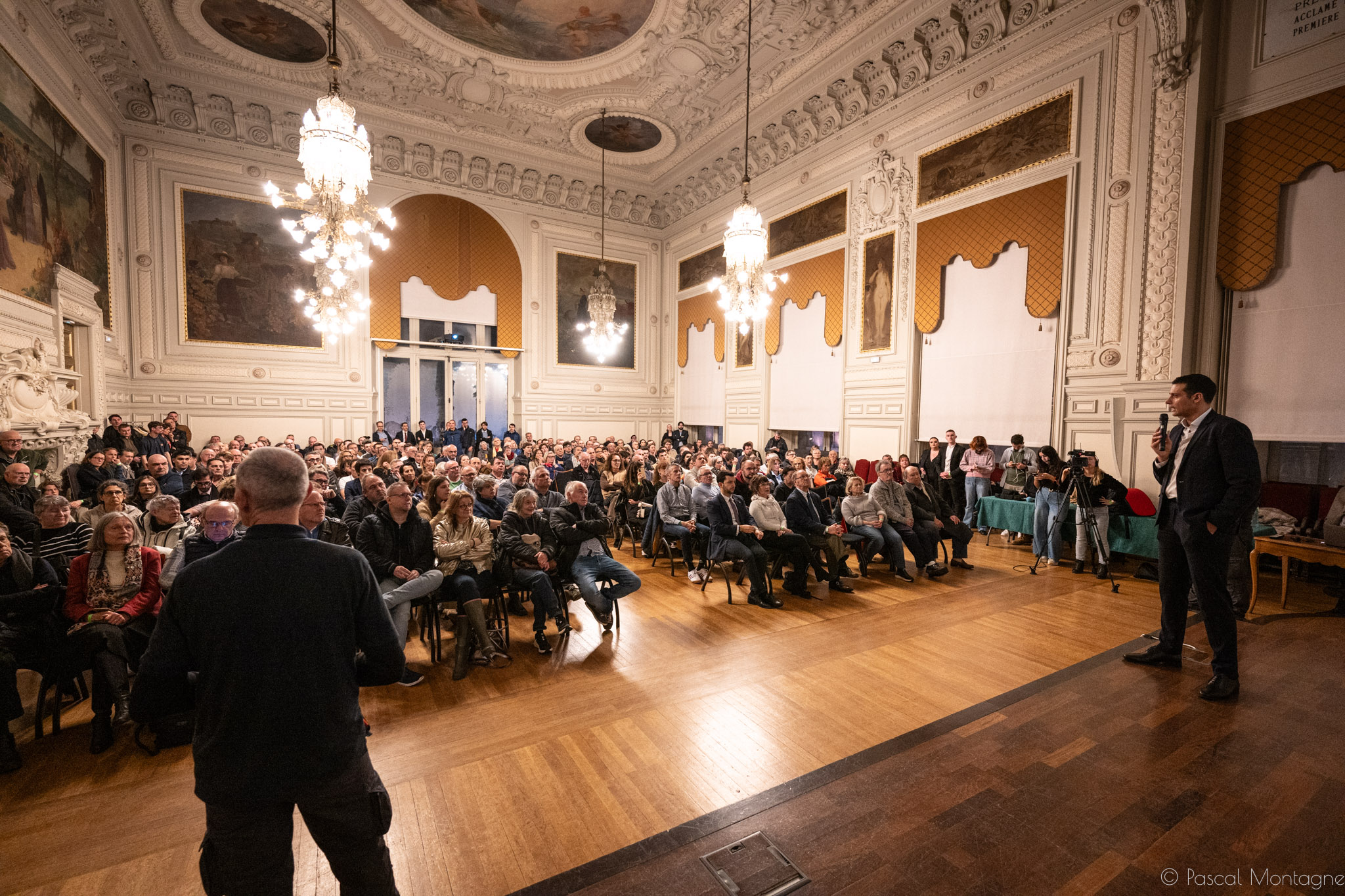 Une belle liste de projets se déroule, parmi lesquels : une grande Arena dédiée aux sports, la transformation du parc expo en salle de concert, la rénovation totale des Halles, l’attribution préférentielle “des logements sociaux aux policiers, pompiers et ATSEM qui méritent ces logements”. Le tout financé par les économies réalisées sur l’annulation du projet de la seconde ligne de tram, permettant d’économiser 500 millions d’euros. Malheureusement, le budget du tram est géré par la métropole, la mairie ne pourrait donc pas utiliser comme elle veut un budget qui ne lui appartient pas. Qu’importe pour M. Nikolic. Mais la litanie de chiffres endort quelque peu la salle, bientôt réveillée par un retour aux fondamentaux : quelques punchlines sur l’augmentation de l’immigration, et l’arrêt des associations Cimade et Sos Méditerranée, et la foule applaudit dans une sorte de réflexe pavlovien.