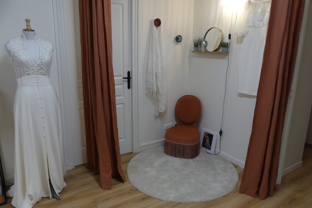 Des projets comme ça, la Maison Jasmée en a engagé une dizaine en quelques mois et espère garnir son carnet de commande d’une vingtaine de clientes supplémentaires d’ici le printemps 2024. Si le nom de la marque n’est pas encore très connu, ses créatrices ont été formées à bonne école : jusqu’en 2022 elles travaillaient aux côtés de Constance Fournier, artisane indépendante basée à Véretz et réalisant des robes sur-mesure pour une clientèle essentiellement parisienne. Une femme expérimentée et talentueuse qui a choisi de changer de vie pour partir faire du social avec sa famille dans les Pyrénées.
