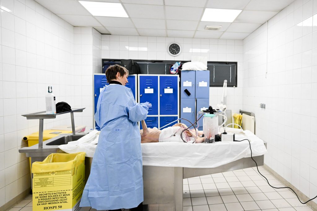 A chaque étape, Léa manipule le corps pour pouvoir travailler. Une activité qui peut être fatigante : “On manipule environ 75 défunts par mois, des corps de 30 à 130 kg, donc la première chose pour un thanato, c’est d’avoir un bon kiné !”