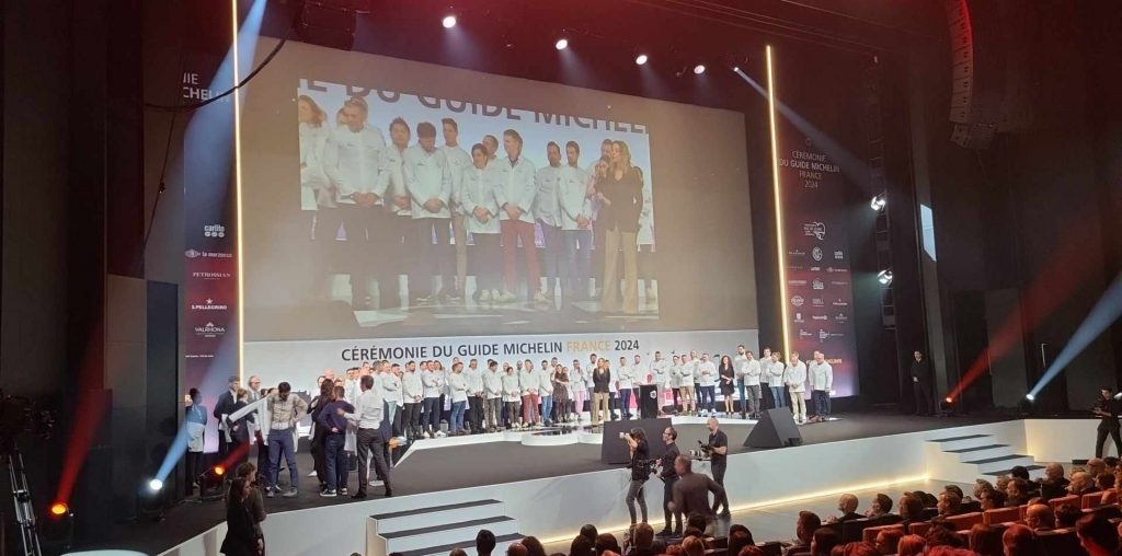Programmé 24h avant la remise des étoiles 2024 du célèbre guide rouge, l’événement réunit 600 personnes. Ont été invités des chefs 2 et 3 étoiles (+ une partie de leurs équipes), l’ensemble des restaurants étoilés de la région Centre-Val de Loire, une délégation de journalistes (dont 37 degrés), le ministre de l’Agriculture Marc Fesneau ou encore des élus locaux. De la gare de Blois à Chambord, le convoi de cars est escorté par les motards de la gendarmerie qui bloquent les ronds-points et les intersections. On apprendra plus tard que c’était pour éviter de croiser une manifestation, plutôt que pour faire gagner du temps.
