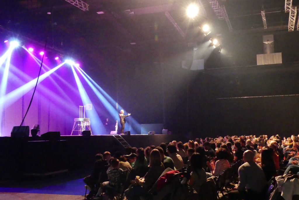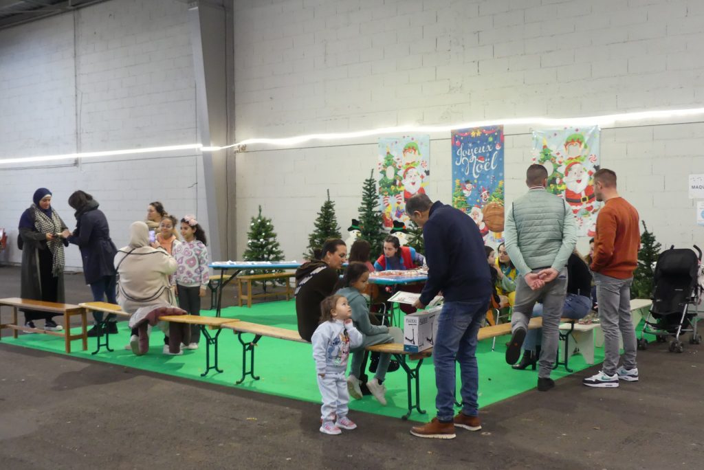 Un Père Noël géant est accoudé aux gradins du Grand Hall. Derrière lui, une grande partie des sièges du parterre sont occupés par des familles venues assister à la 2e représentation d’un spectacle qui mélange cirque et humour. Au total, 4 shows sont prévus sur deux jours. Pendant ce temps-là, l’affluence est calme sur les autres animations « mais dès que ce sera terminé ça va grouiller dans tous les sens » nous explique Faustine, l’une des 3 personnes qui travaille pour l’association VLCT (Vacances Loisirs Centre Touraine).