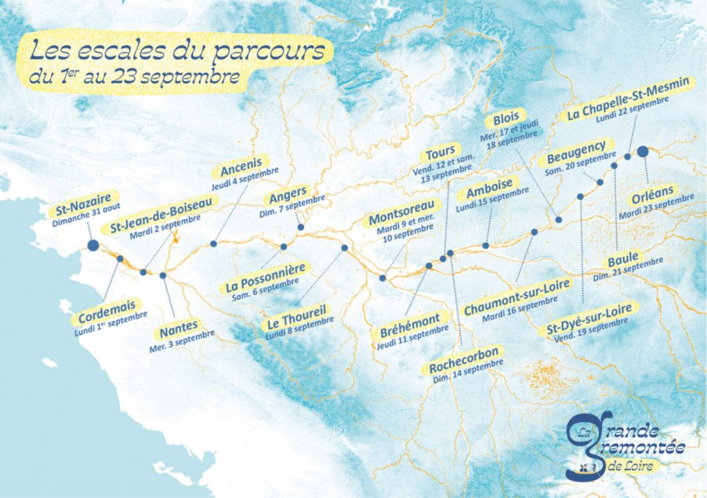 Portée par l’engagement de ses 78 partenaires publics et privés, la Grande Remontée s’inscrit dans une volonté de réunir les Ligériens avec leur fleuve, c’est pour cela que 20 escales sont planifiées sur toute l’étendue de la traversée. Ces escales ont pour objectif de proposer des animations artistiques mais aussi scientifiques.