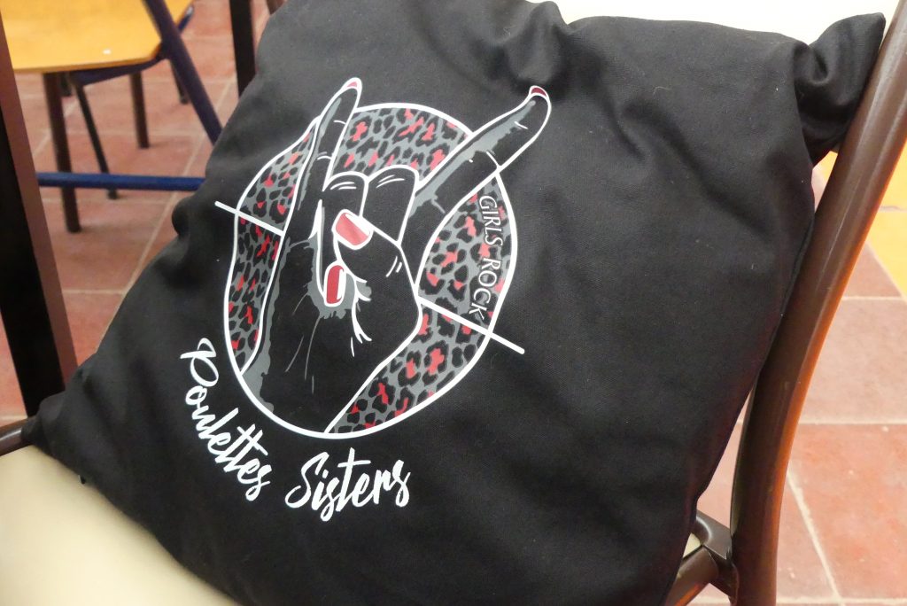 Après le pin’s il y a eu les housses de coussins, les t-shirts, le briquet… Des motifs léopard, aussi. Poulettes Sisters est née. « Poulettes, c’est comme ça qu’on s’appelait avec une copine quand on avait 15-16 ans. Et Sisters, c’est pour la famille qu’on se choisit. » D’ailleurs, la marque a développé une communauté sur Facebook, un groupe avec plus de 2 000 personnes qui a débouché sur la création d’une asso – Poulettes l’Assaut – et sur l’organisation de collectes pour les femmes en difficulté au moment de la fin de l’année (77 villes ont participé en 2023).