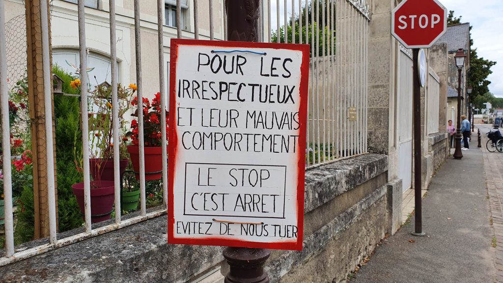 De l’autre côté de l’Atlantique il semble qu’une partie des automobilistes soit en délicatesse avec les mots. Malgré un panneau « STOP » bien en évidence dans une petite rue du centre de Bléré, un riverain a jugé utile d’en ajouter un autre avec moins de rouge mais tout autant de majuscules, à l’adresse de personnes qui auraient tendance à ne pas respecter la consigne. Et là, on y lit clairement la définition suivante : « LE STOP C’EST ARRÊT ». Larousse et Robert n’auraient pas dit mieux.