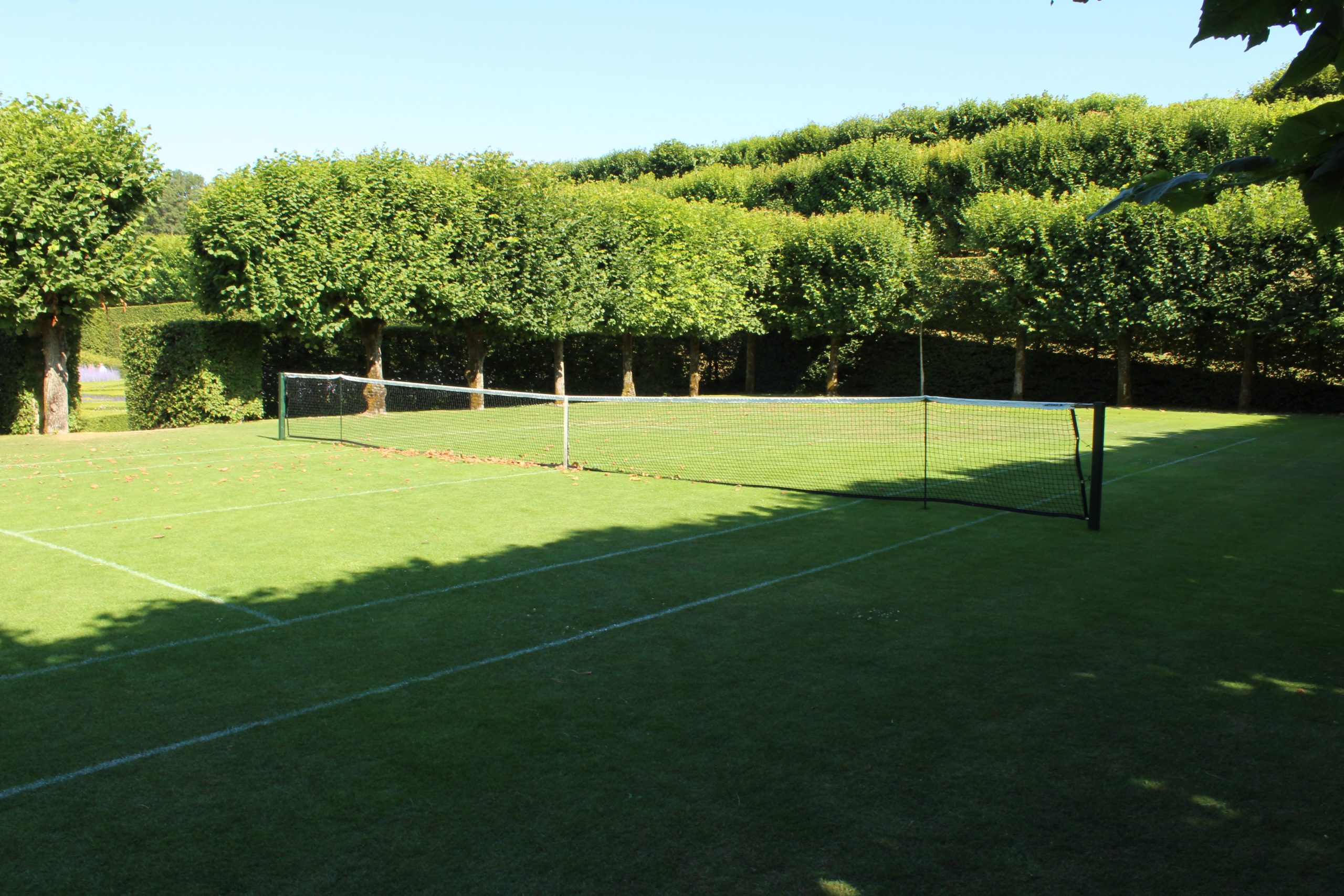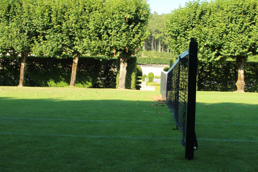 Aplanissement du sol, sélection d’un mélange de plusieurs types de gazon sportif, une tonte à 20 mm*, un arrosage quotidien en été, désherbage des mauvaises herbes à la main, 5 apports d’engrais organique et trois scarifications** par an. Coût total du tableau : 10 000 euros. Un budget certes, mais comme nous l’indique le propriétaire aucun regret : « Aujourd’hui, ça fait partie intégrante du charme du lieu, je ne regrette absolument pas. Les gens aiment se poser, flâner dessus. Il n’est pas là pour une pratique professionnelle quotidienne ce qui demanderait trop de travail, mais simplement pour créer une alchimie avec les jardins et jouer parfois dessus. » Jouer dessus, mais qui a donc cet honneur ? Le cercle familial, le rédacteur de cet article mais aussi quelques joueurs professionnels et les clubs des alentours en guise d’initiation à une surface dont, d’après la FFT, seulement 6 clubs en France bénéficient. « Je ne peux me permettre de donner l’accès du terrain aux particuliers. L’objectif pratique consiste surtout à organiser des journées de découverte avec les jeunes joueurs des clubs alentours, et d’accueillir potentiellement quelques joueurs professionnels, afin qu’ils répètent leurs gammes avant Wimbledon. »