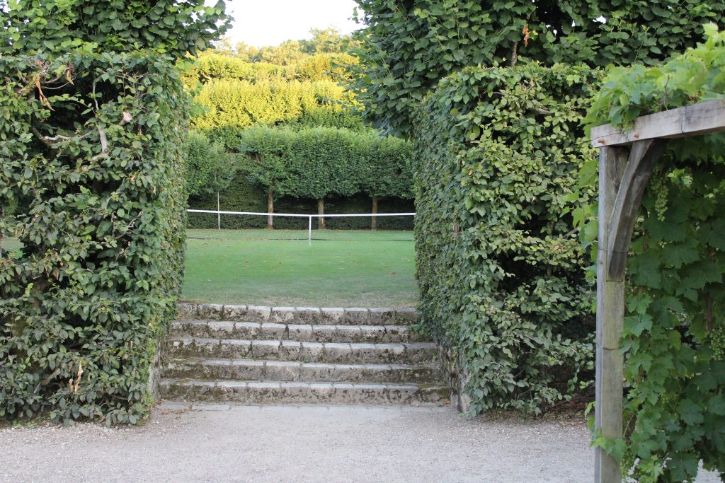 « Pour le trouver, vous n’avez qu’à suivre une diagonale fictive qui passerait au-dessus des carrés de jardin et vous devriez, sans doute, tomber dessus.» Pour rejoindre un terrain de tennis sur gazon dissimulé dans un tel écrin, on ne pouvait souhaiter de meilleures indications de la part d’Henri Carvallo, le propriétaire des lieux. A 710 km de Wimbledon, pas de Pimm’s, ni de fraises à la crème, peu de tuniques entièrement blanches et de démarches flegmatiques dans les allées, mais un authentique court en herbe encadré non par pas des gradins mais par un cloître de tilleuls et de charmes. Tradition oblige me diriez-vous ? Oui, c’est pratiquement ça.