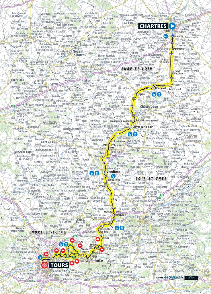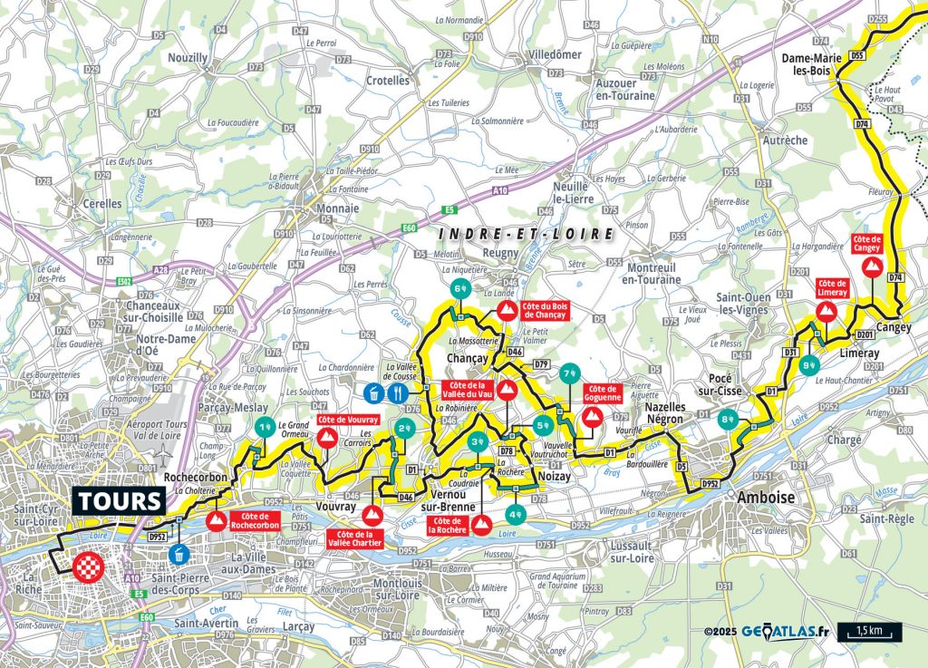 Sportivement, l’intérêt est également croissant. Après avoir bravé de potentielles « bordures » en Beauce et dans le Vendômois, le peloton en découdra dans neuf chemins de vignes et un enchaînement de neuf côtes à Noizay, Chançay, Vernou-sur-Brenne, Vouvray, Rochecorbon… Avant d’entrer à Tours par la rive nord, le pont Napoléon et la rue Léon-Boyer.