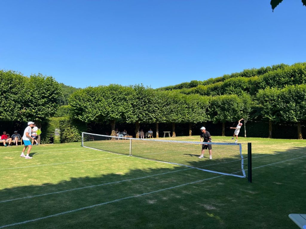 Mais on l’a dit, si le gazon est la surface noble du tennis – sport qui s’appelait d’ailleurs à l’origine lawn tennis, c’est-à-dire tennis pelouse -, la surface est extrêmement exigeante à l’entretien et se détériore rapidement. Conséquence, le terrain sert uniquement à la famille des propriétaires ou pour quelques événements triés sur le volet. C’est ainsi que depuis 2022, chaque année au mois de juin, est organisé en partenariat avec le Crédit Agricole et l’Office de tourisme Tours Val de Loire, un Open de Villandry, ouvert sur invitations à des structures partenaires des organisateurs (dont 37 degrés). Le temps d’une journée, et avec des matchs sous forme de super tie-breaks (soit en 10 points gagnants), une trentaine de joueurs ont la chance de pouvoir taper la balle sur ce petit écrin de verdure et appréhender les caprices d’une surface pas comme les autres avec ses rebonds bas et aléatoires. Un événement qui permet de mettre en avant et faire connaître ce terrain singulier, sur fonds de journée conviviale ponctuée par une visite du château et terminée par un cocktail.